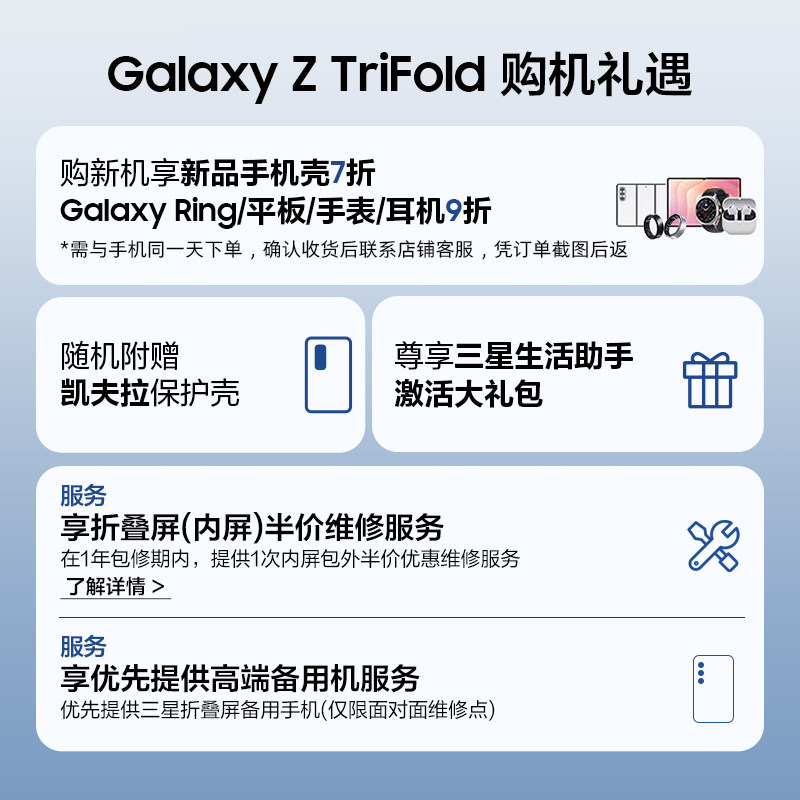 【88VIP专属新品】三星Galaxy Z TriFold 创新三折叠屏2亿像素手机10英寸大屏定制骁龙8 AI智能手机官旗正品