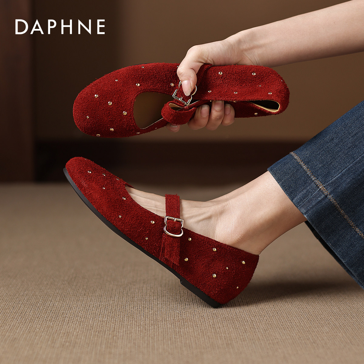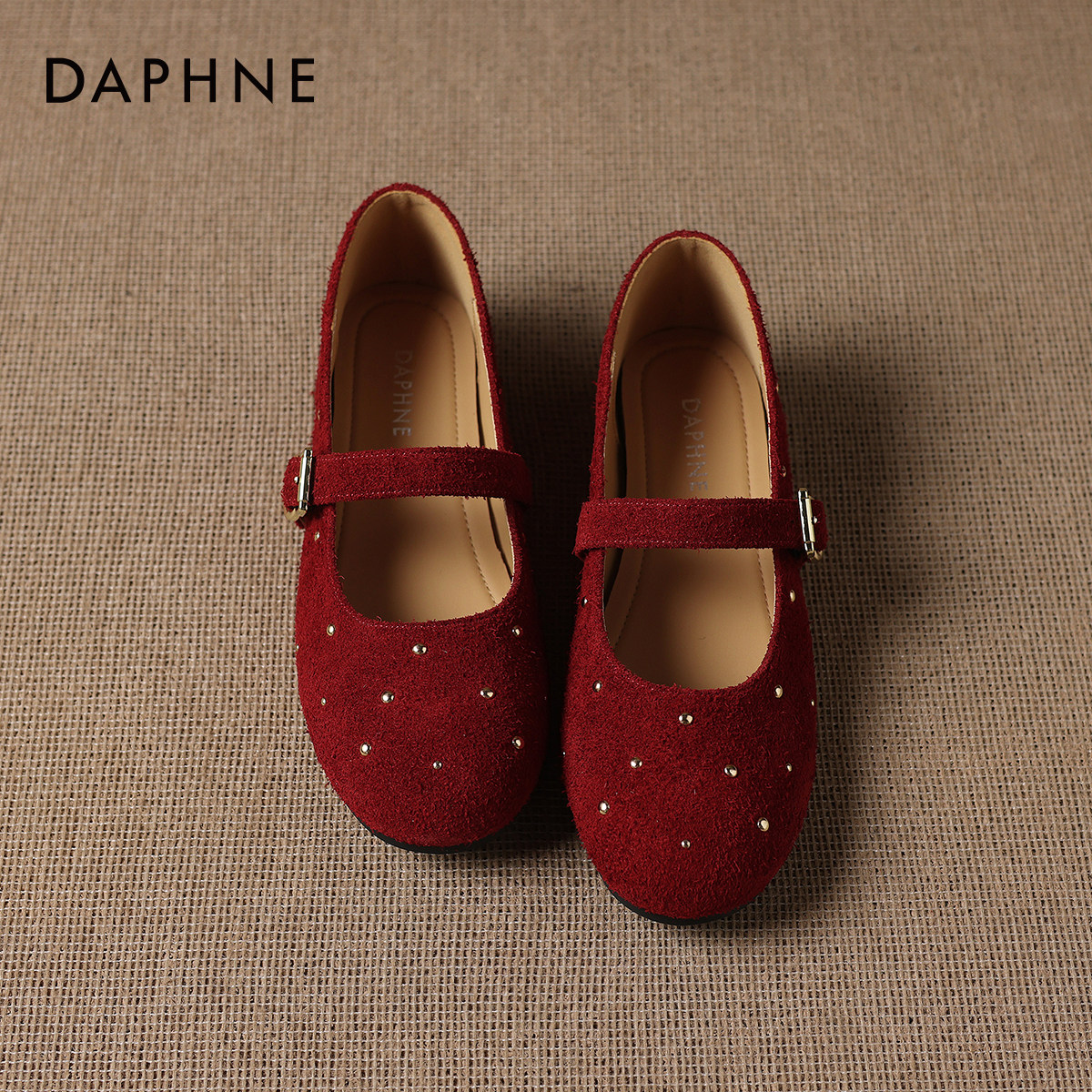 达芙妮红色小单鞋2026新款玛丽珍女鞋软底不累脚芭蕾平底绝美秋季