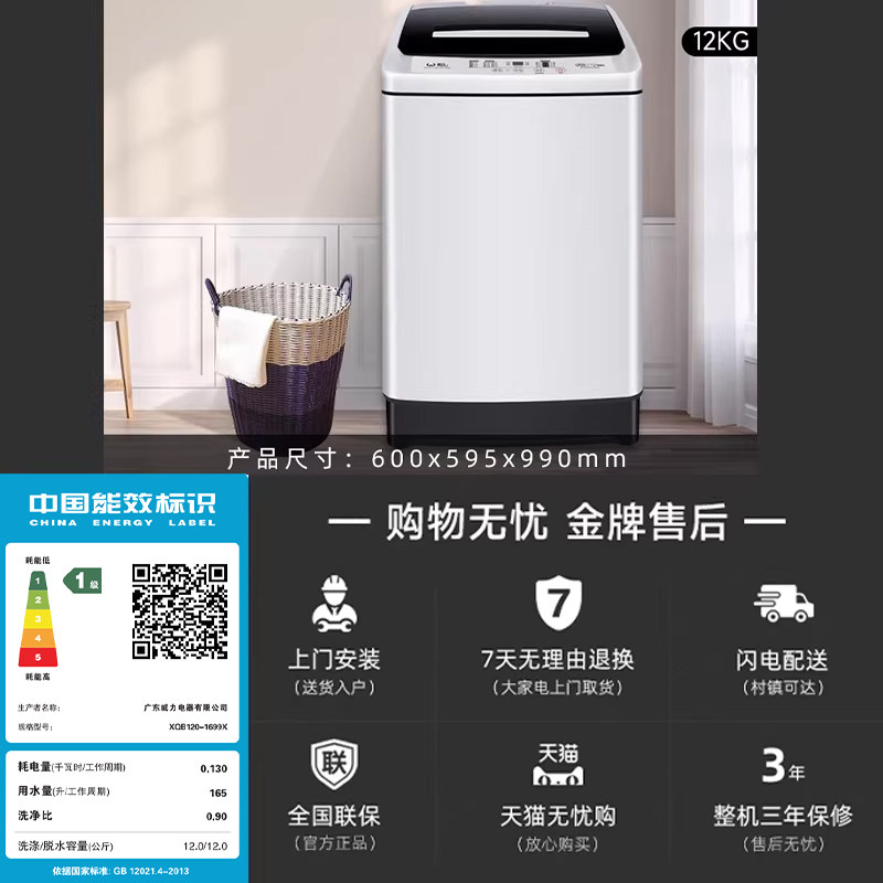 换新补贴 | 威力12公斤大容量全自动洗衣机家用波轮洗脱一体1699X