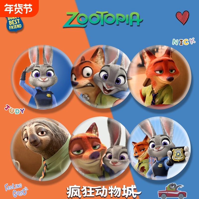 疯狂动物城周边徽章朱迪兔子警官狐尼克别针吧唧谷子胸针礼物挂件