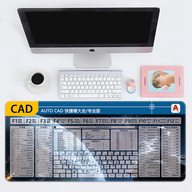 CAD快捷键鼠标垫超大办公键盘垫常用快捷键大全cad软件专业级桌垫