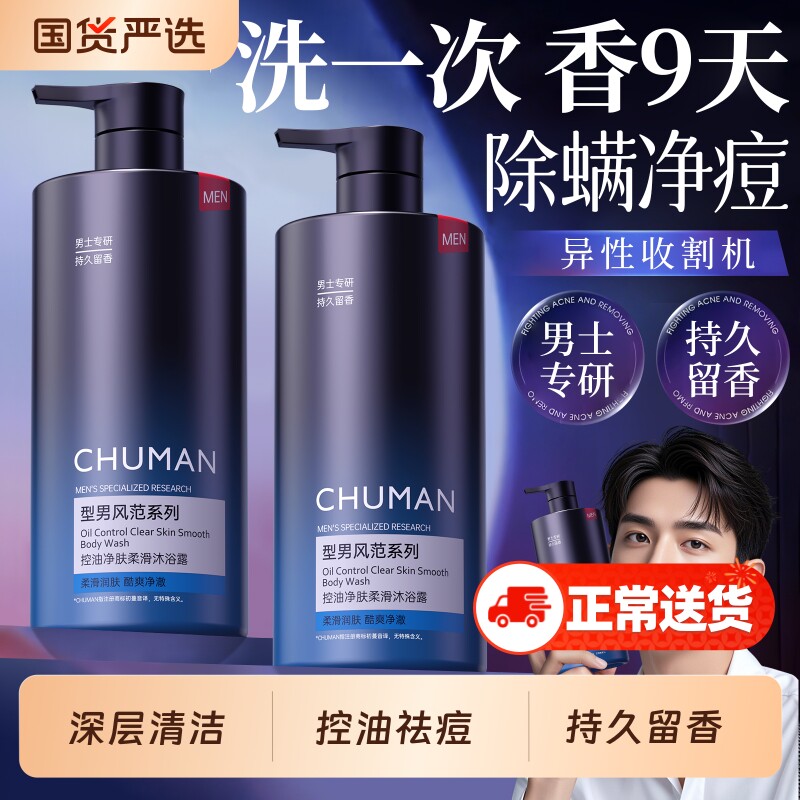 沐浴露男士持久留香正品官方品牌古龙祛痘除螨乳液洗发水组合套装
