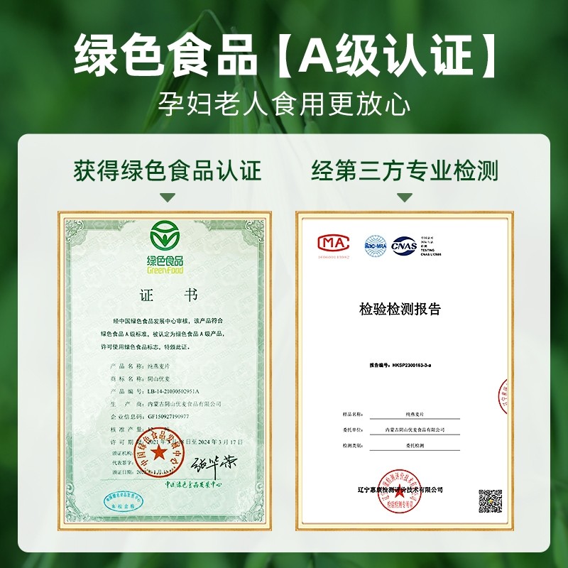 阴山优麦纯燕麦片无添蔗糖内蒙古官方正品裸燕麦营养早餐即食冲饮