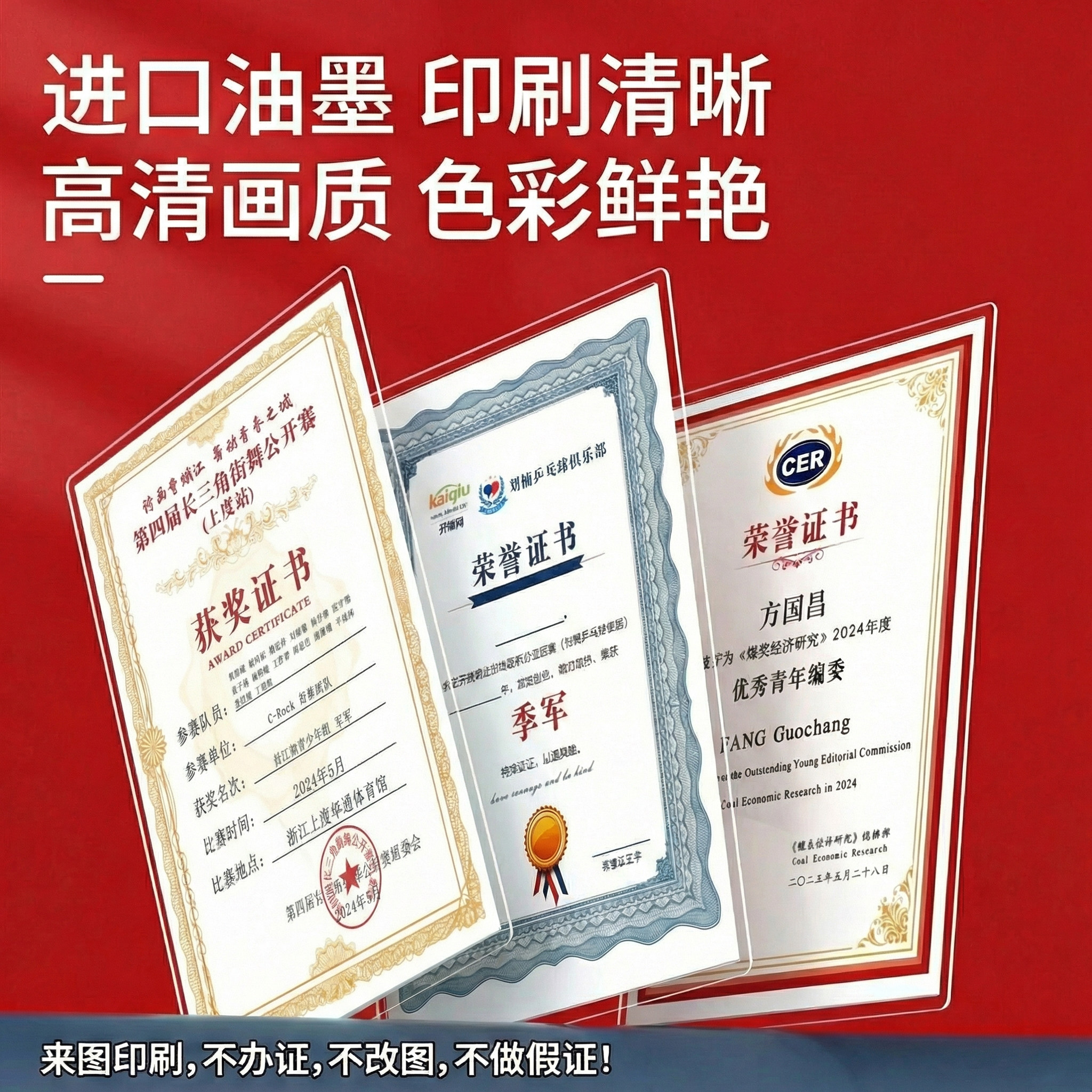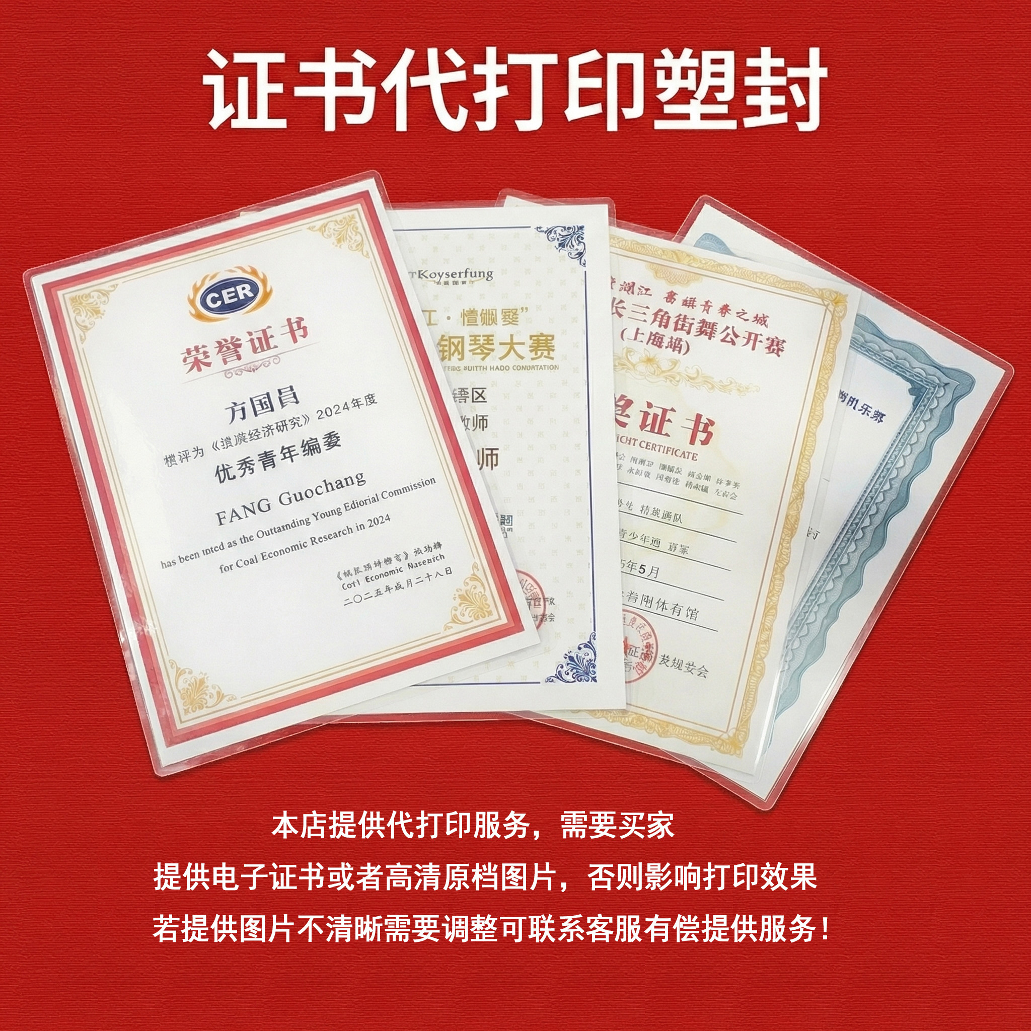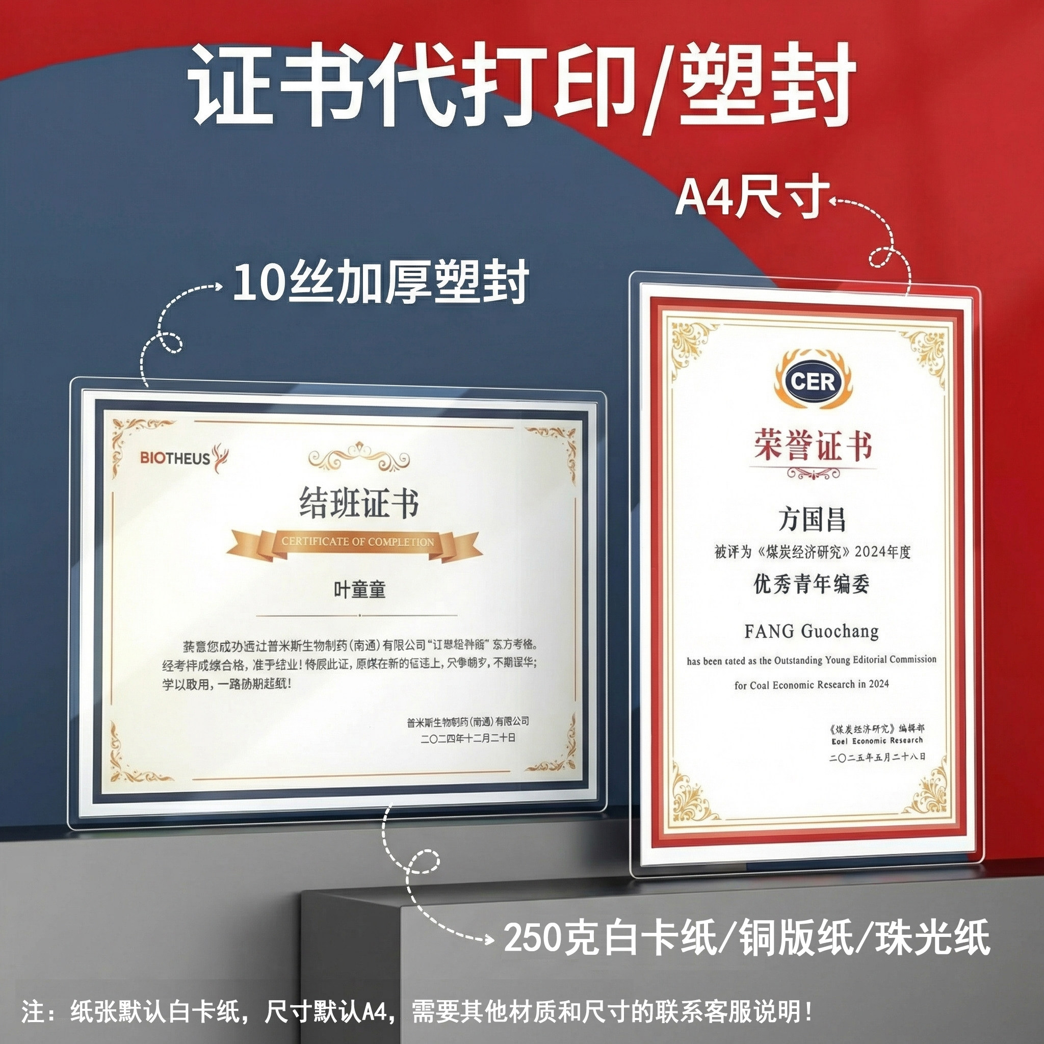 证书打印塑封A4荣誉证书结业奖状定制菜单设计图片彩色打印过塑可烫金舞蹈考级电子证书印刷打印照片加塑封