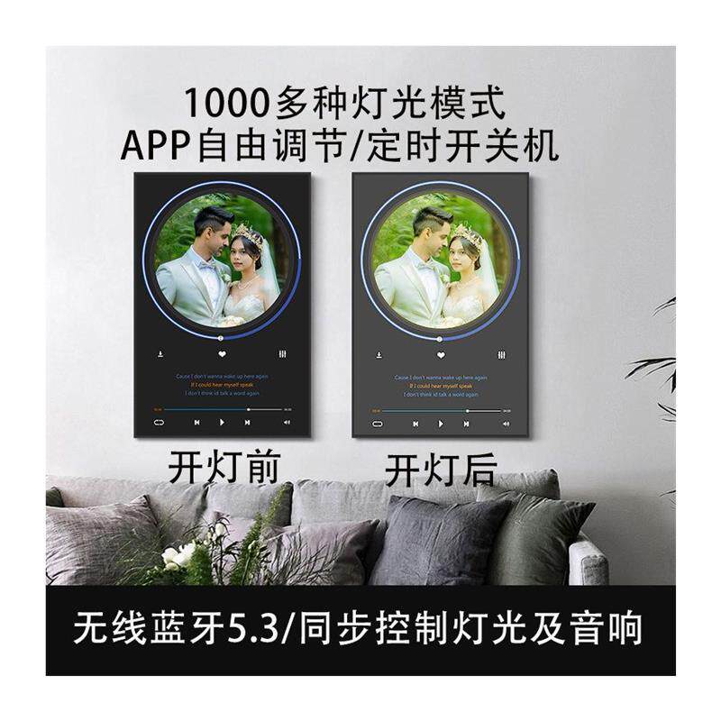壁画音箱定制礼品相框蓝牙壁画音响黑胶款壁挂无线送礼小夜灯双喇