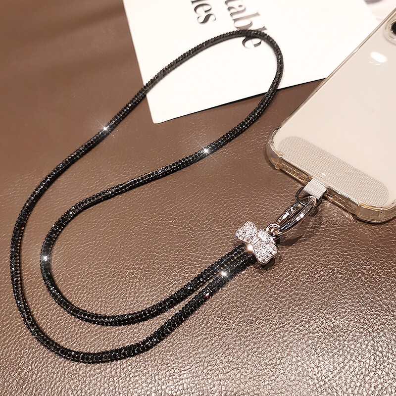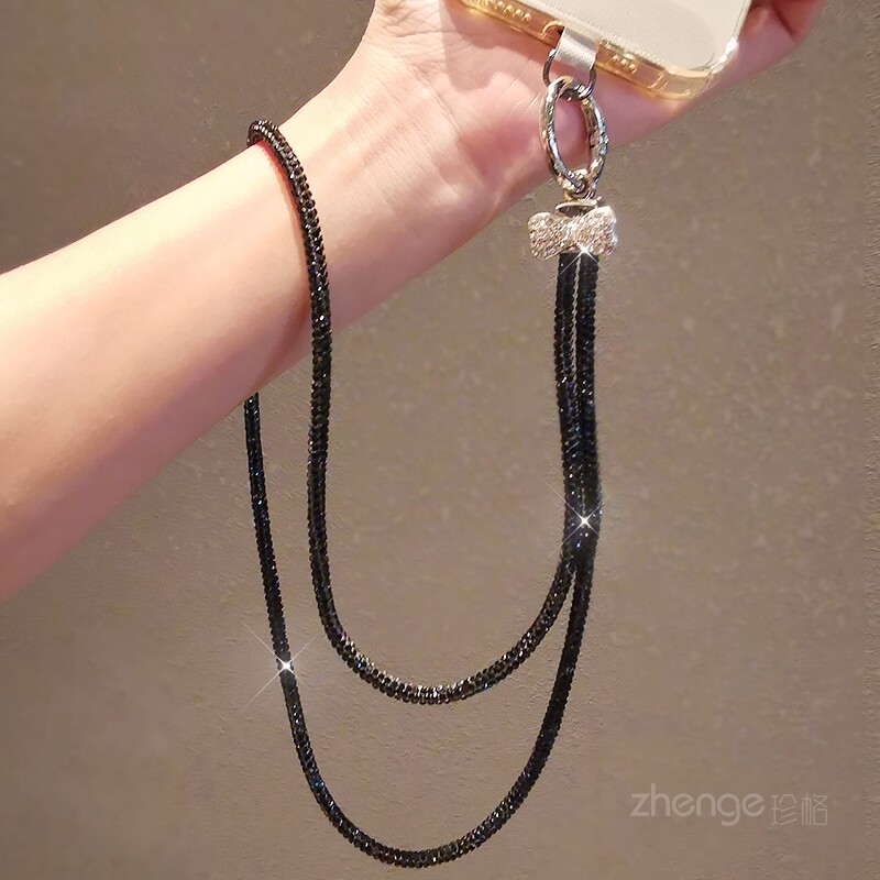 手机挂绳奢华满钻挂链长款蝴蝶结饰品挂脖带子高端水钻女生手提链