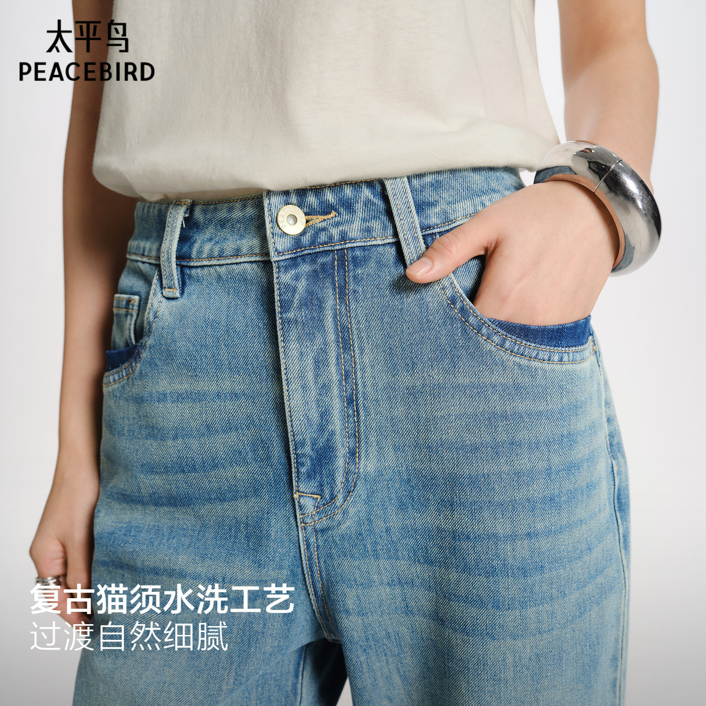 四面弹修容裤太平鸟高腰阔腿牛仔裤26春季新款显瘦窄版直筒牛仔裤