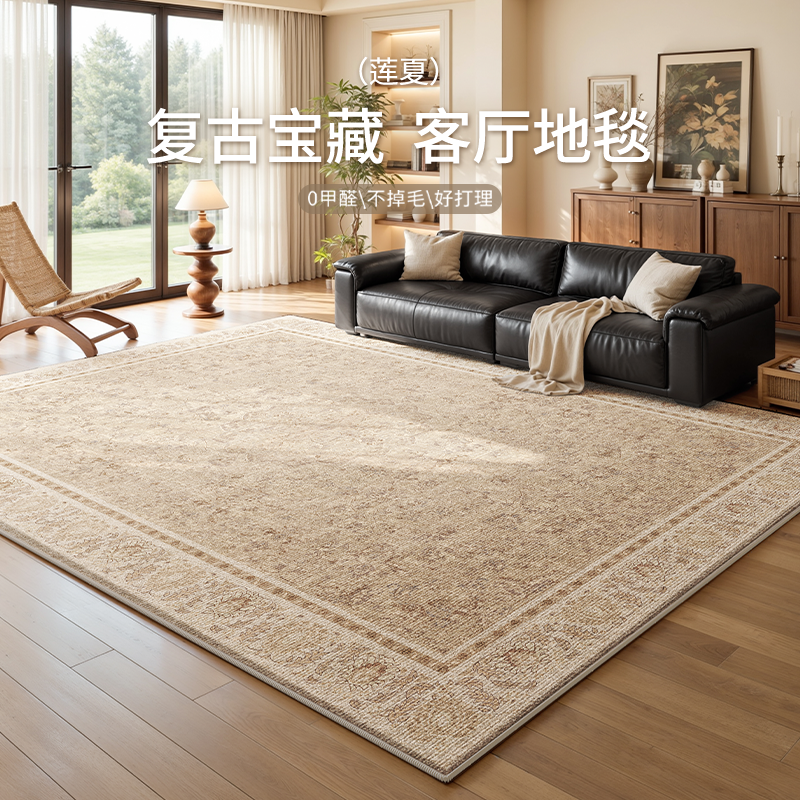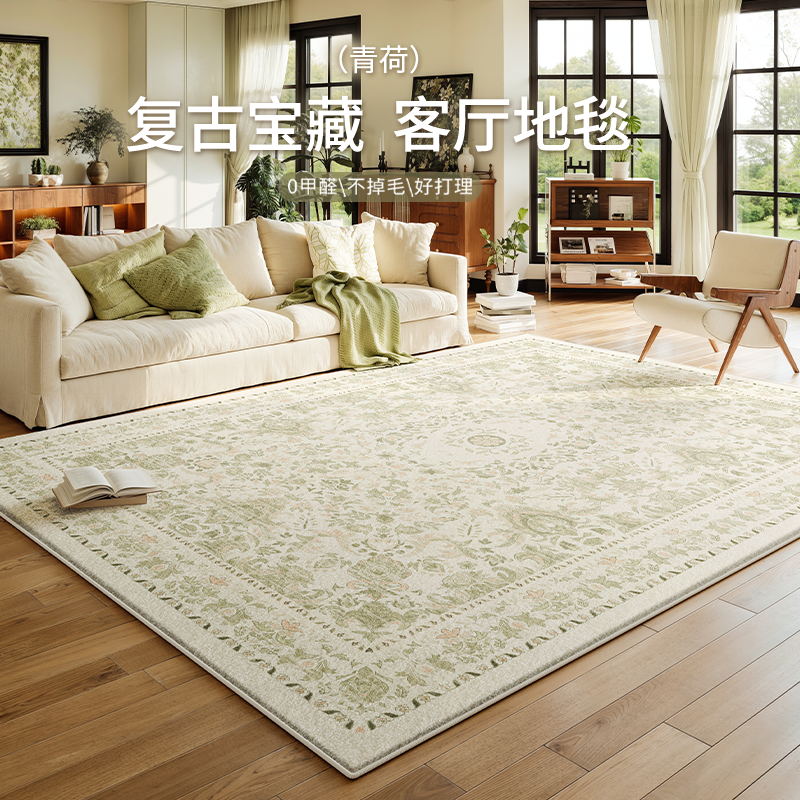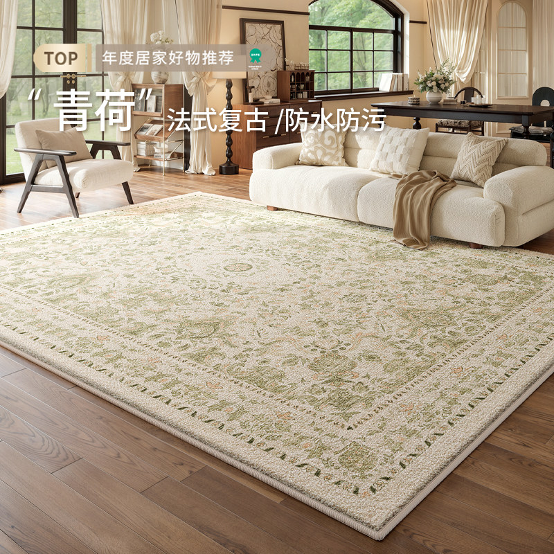 地毯客厅2025新款绿色法式复古中古风免洗防水沙发卧室高级感地垫