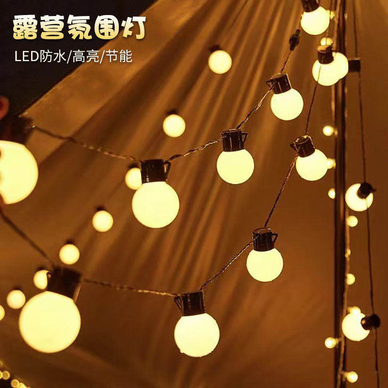 户外露营氛围灯太阳能圆球灯串彩灯串灯天幕帐篷装饰防水夜市摆摊