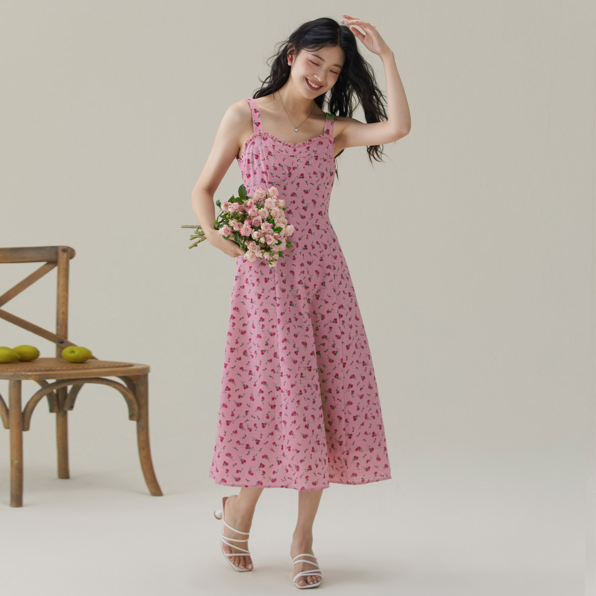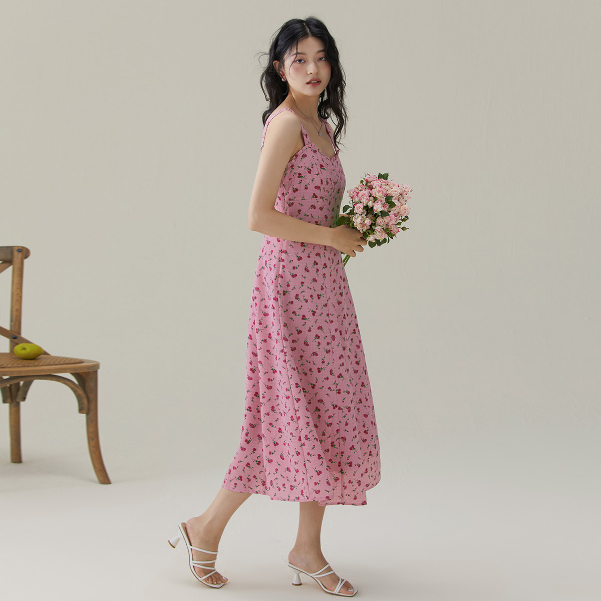 2026夏季初恋碎花连衣裙女高级感薄款茶歇裙法式木耳边吊带裙
