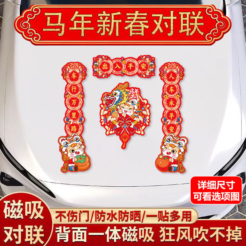 贺年磁吸对联新款马年汽车过年春节春联冰箱贴福字新年装饰新春
