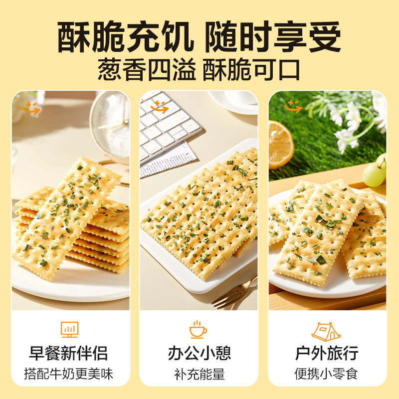 良品铺子香葱苏打饼干薄脆饼干代早餐垫饥下午茶网红休闲零食小吃
