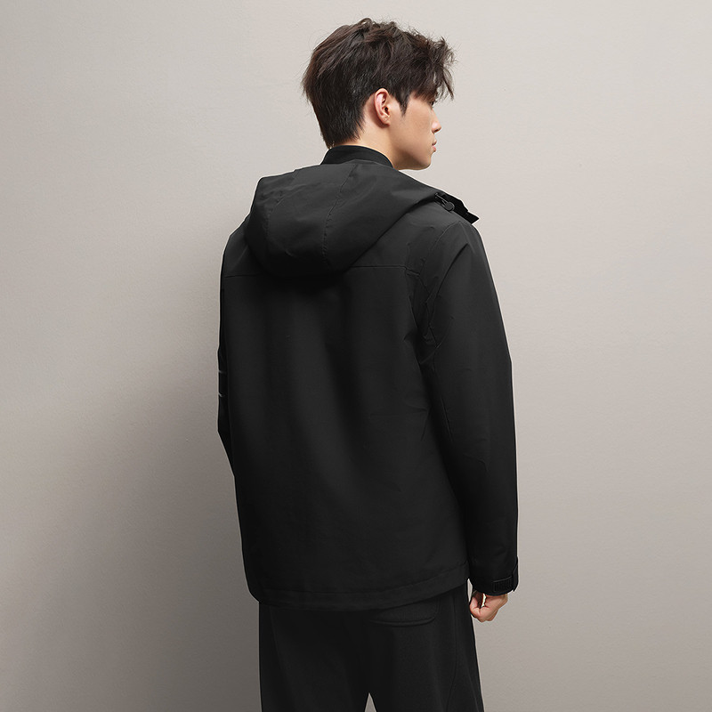 HLA/海澜之家连帽夹克2025秋季新压胶纯色印花休闲风柔软外套男