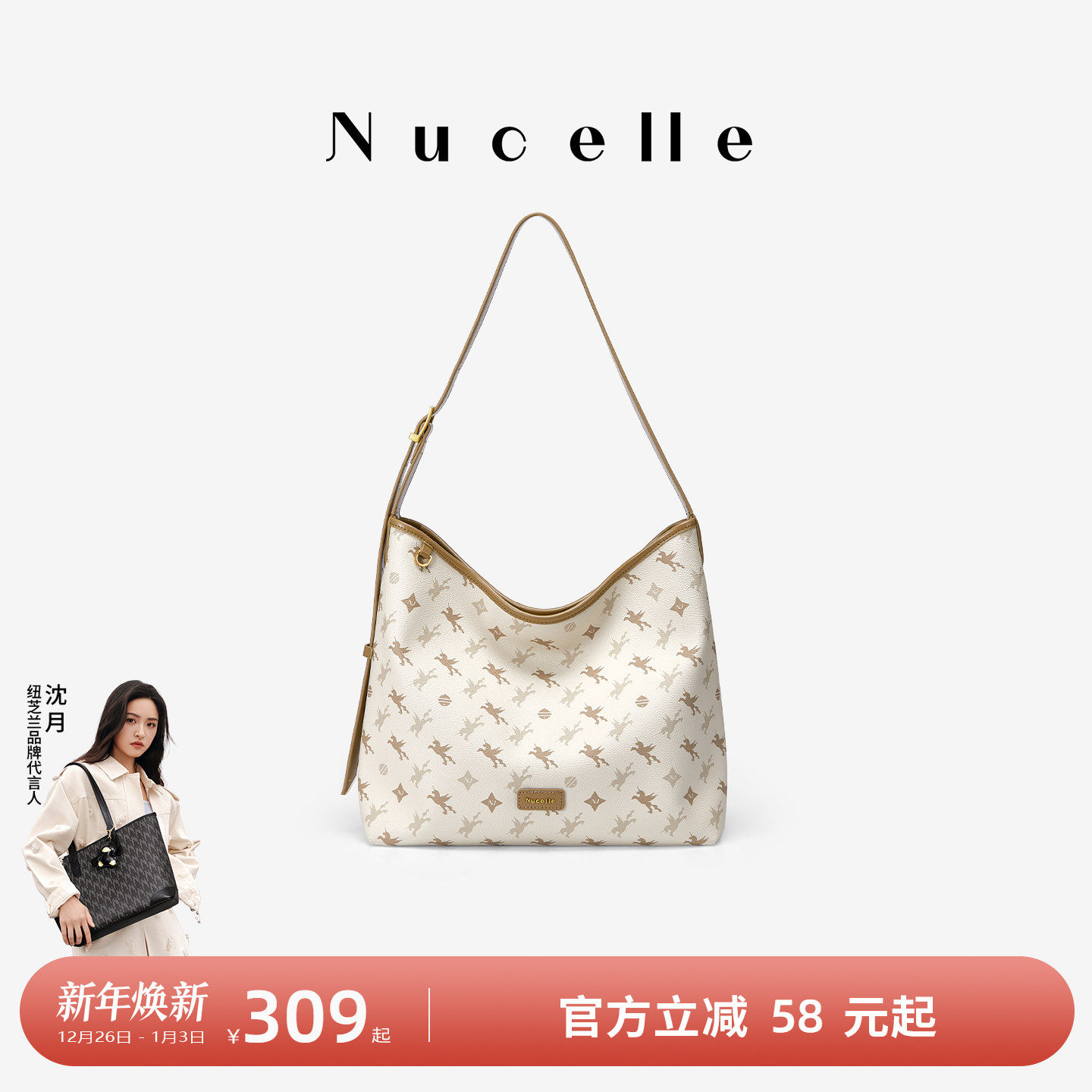 NU纽芝兰水桶包2025新款飞马老花腋下包上班通勤HOBO包单肩斜挎包