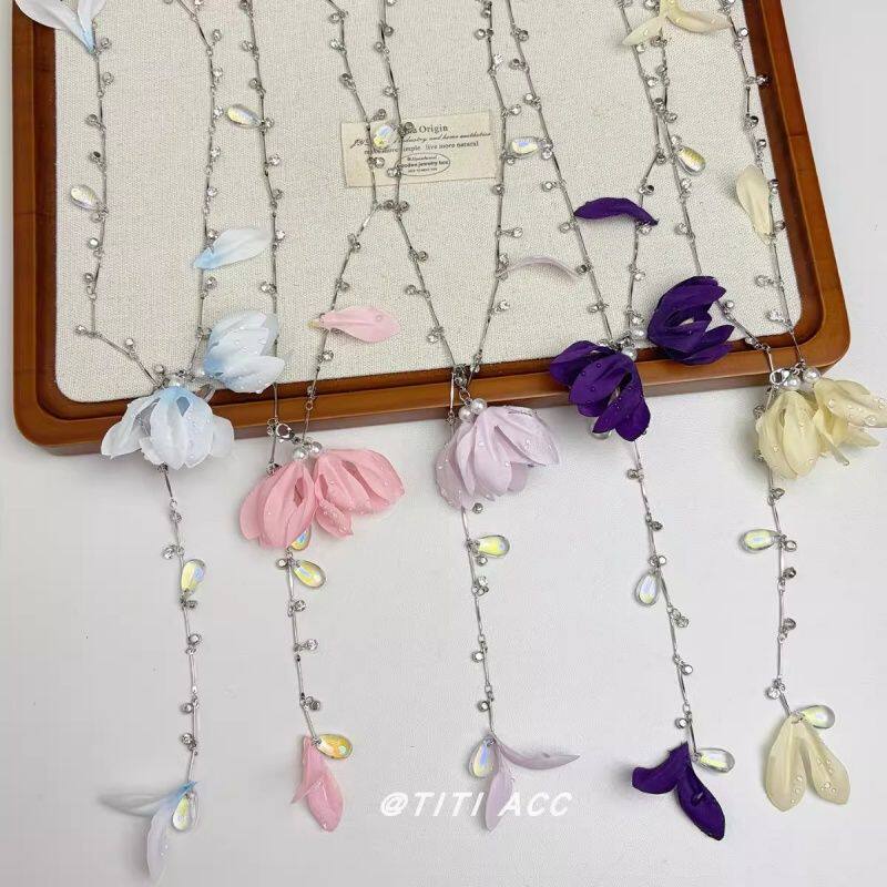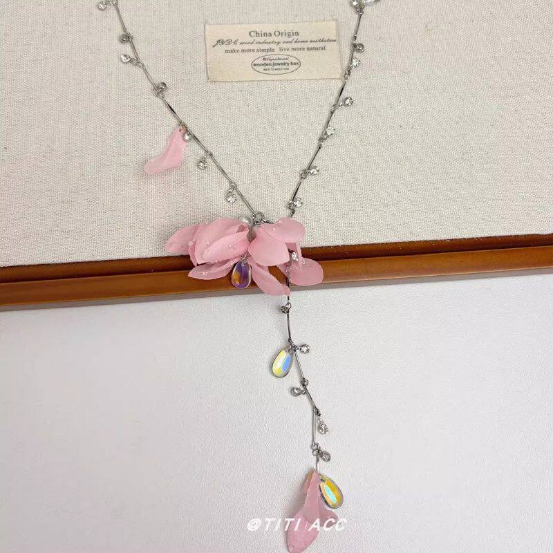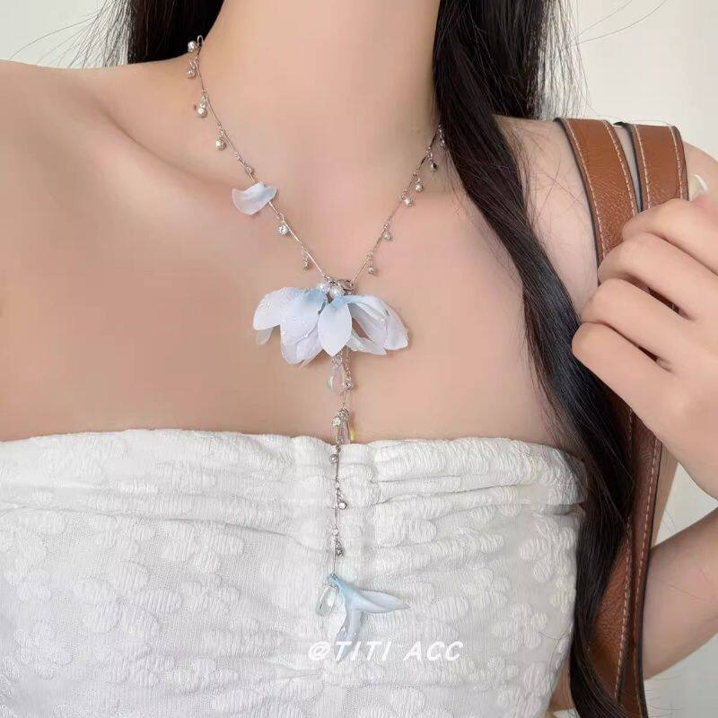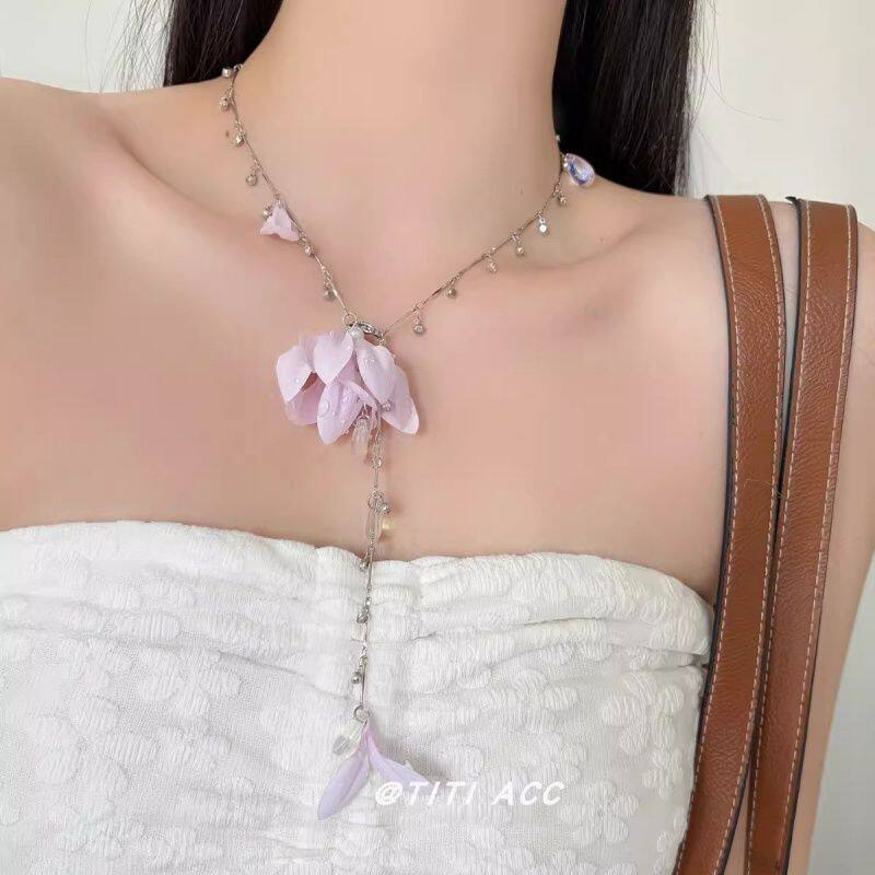 布艺花朵吊坠项链女2026新款小众高级设计感锁骨链海边度假风配饰