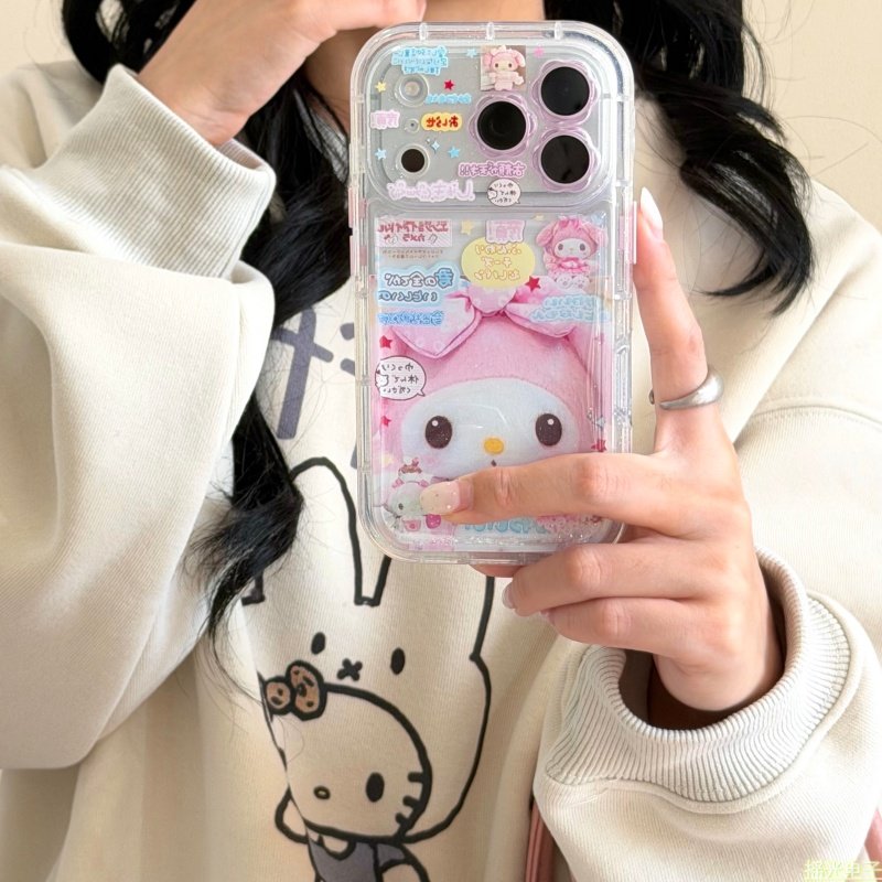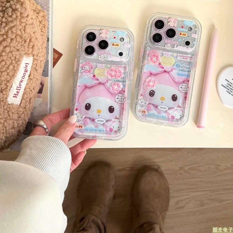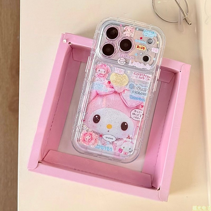 可爱卡通花朵透镜流沙古早感颜文字美乐蒂适用苹果17/16promax手机壳iphone15/14/13