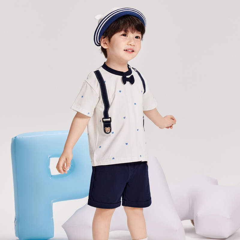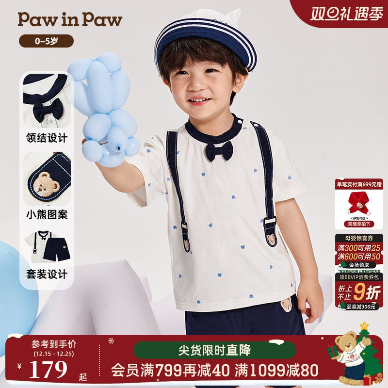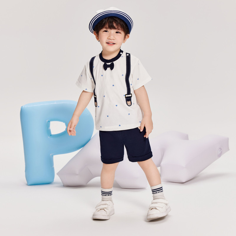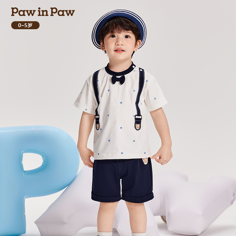 PawinPaw卡通小熊童装夏季男女宝宝满印背带短袖套装