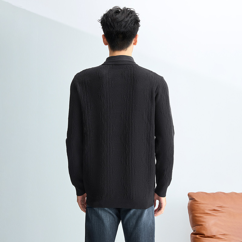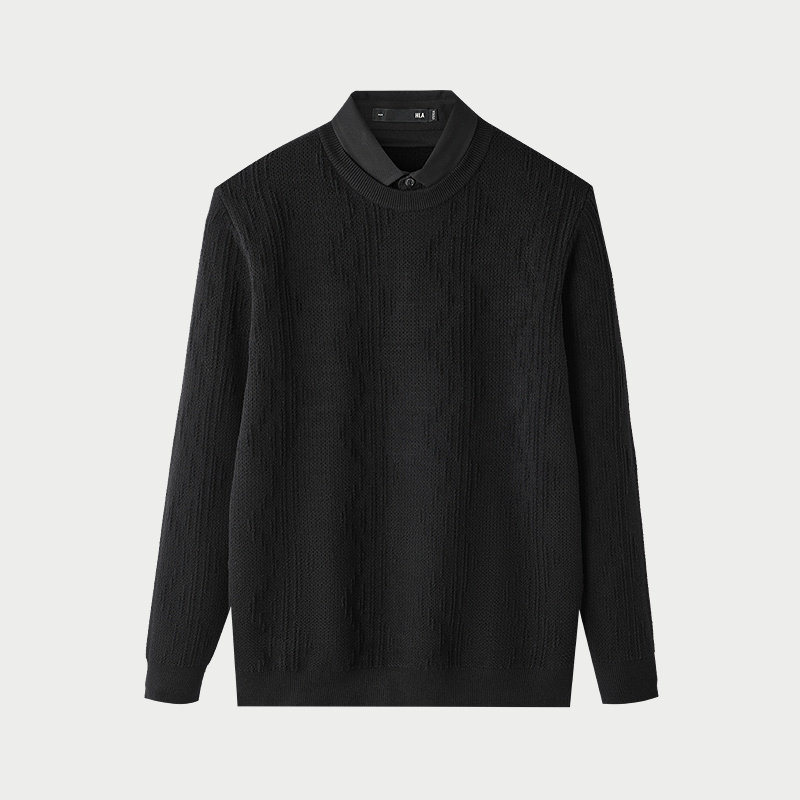 HLA/海澜之家轻商务时尚双领针织衫25秋新款假两件保暖黑色毛衣男