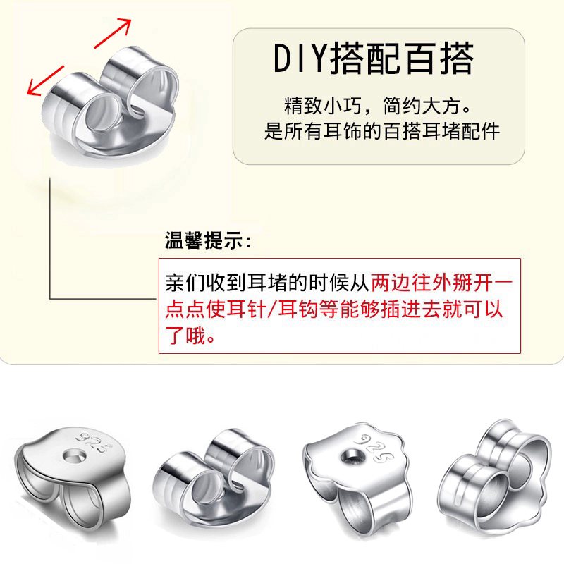 银匠S925纯银耳堵蝴蝶扣防掉超紧耳塞耳钉耳扣耳帽耳塞耳钉配件
