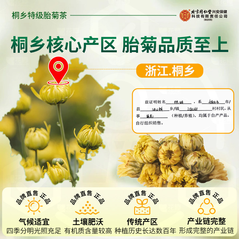同仁堂菊花茶特级正品清火气胎菊贡杭凉茶金银花官方旗舰店养生茶