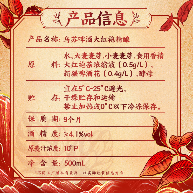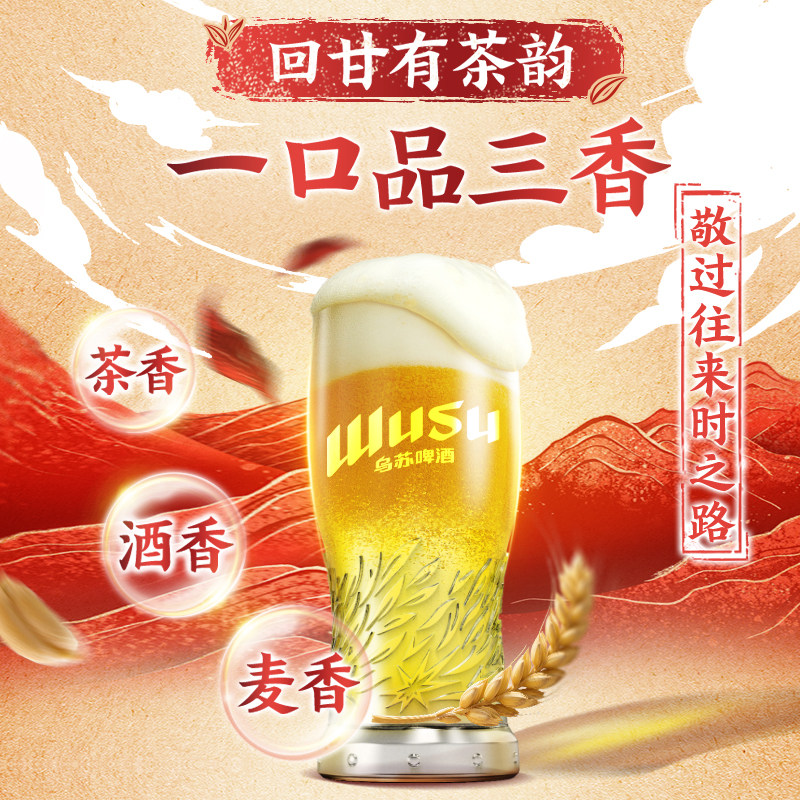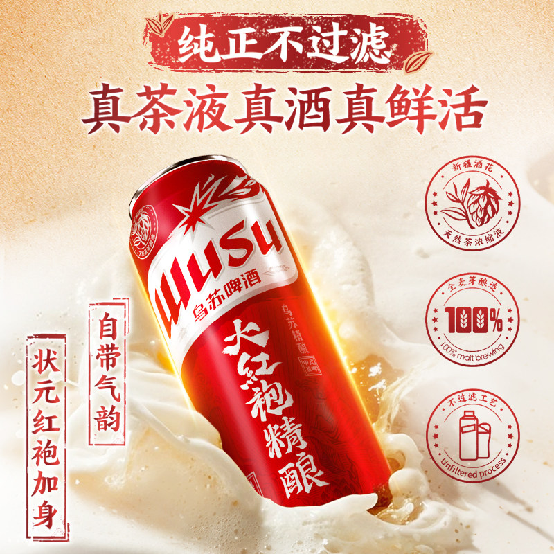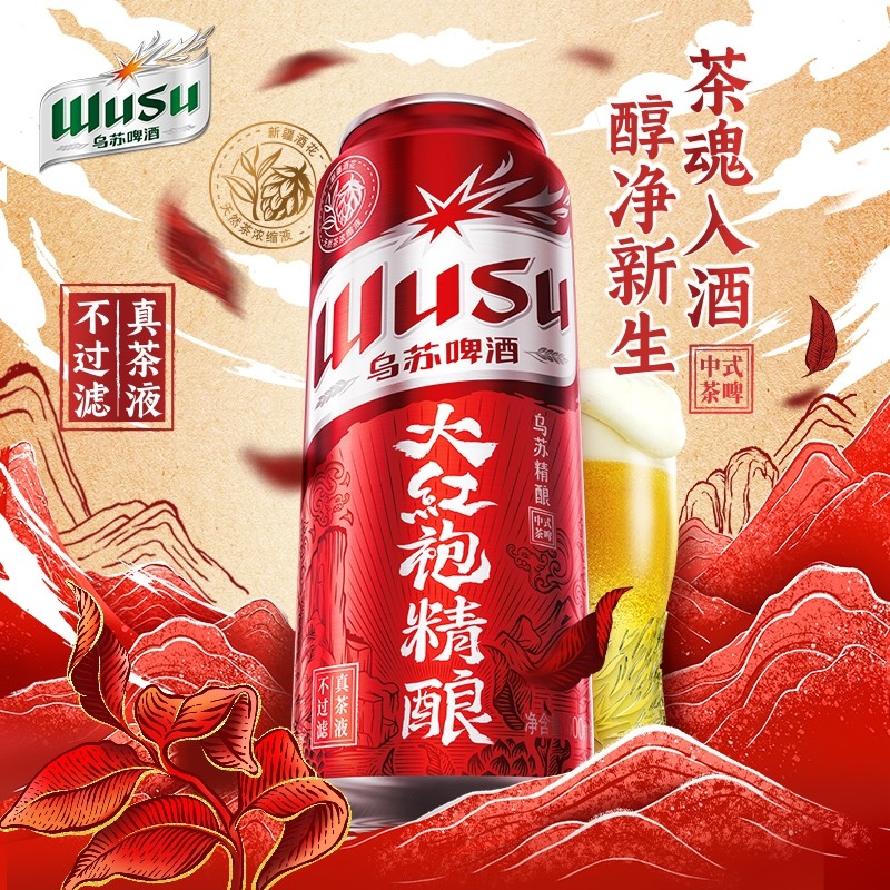乌苏啤酒大红袍精酿500ml罐乌苏首款中式茶啤酒新疆酒花啤酒整箱