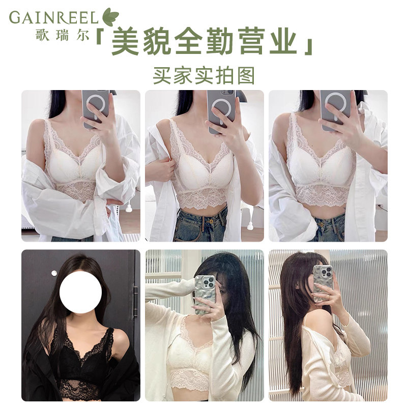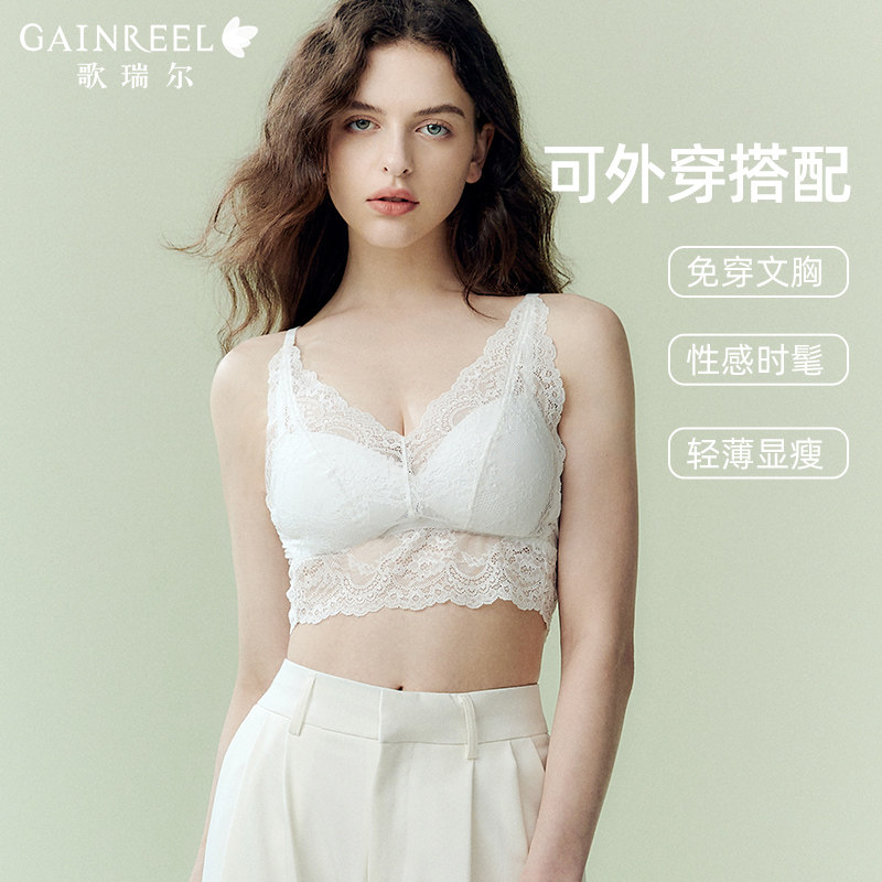 歌瑞尔美背文胸一体式内衣女薄款透气蕾丝背心性感美背吊带内搭