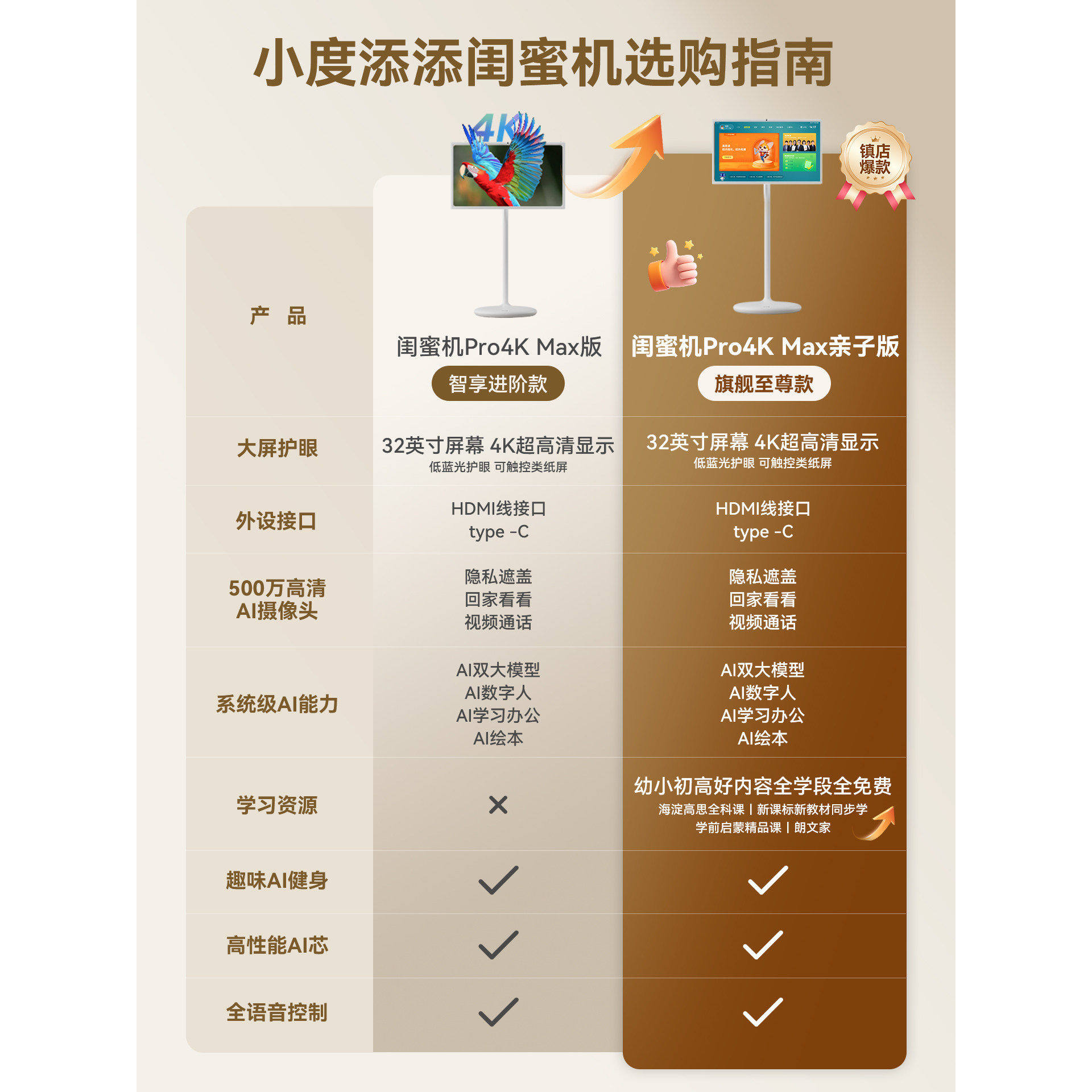 小度添添闺蜜机4KProMAX闺蜜机平板电脑音箱智能屏电视智能新款