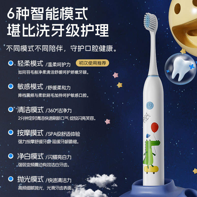 新品儿童牙刷卡通声波式牙刷电动软毛充电式儿童电动牙刷