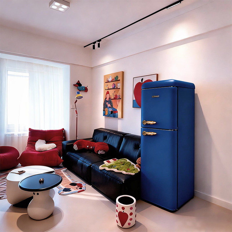 HCK哈士奇小吐司2.0复古冰箱一级能效迷你家用客厅办公室冷冻保鲜