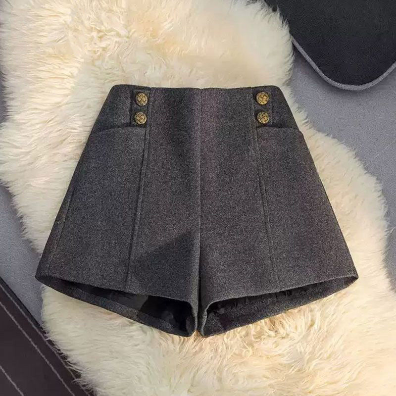 毛呢短裤女春季2026新款高腰a字设计感小众大码显瘦气质外穿靴裤