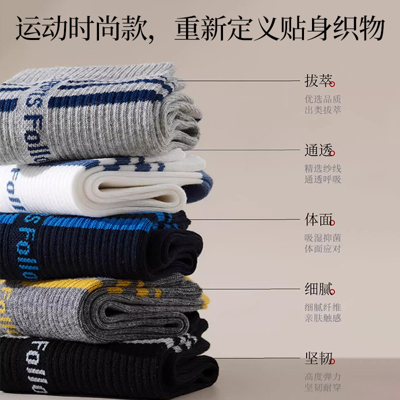 袜子男款春秋季运动吸汗防臭中筒袜夏天青少年透气抗起球长袜防滑