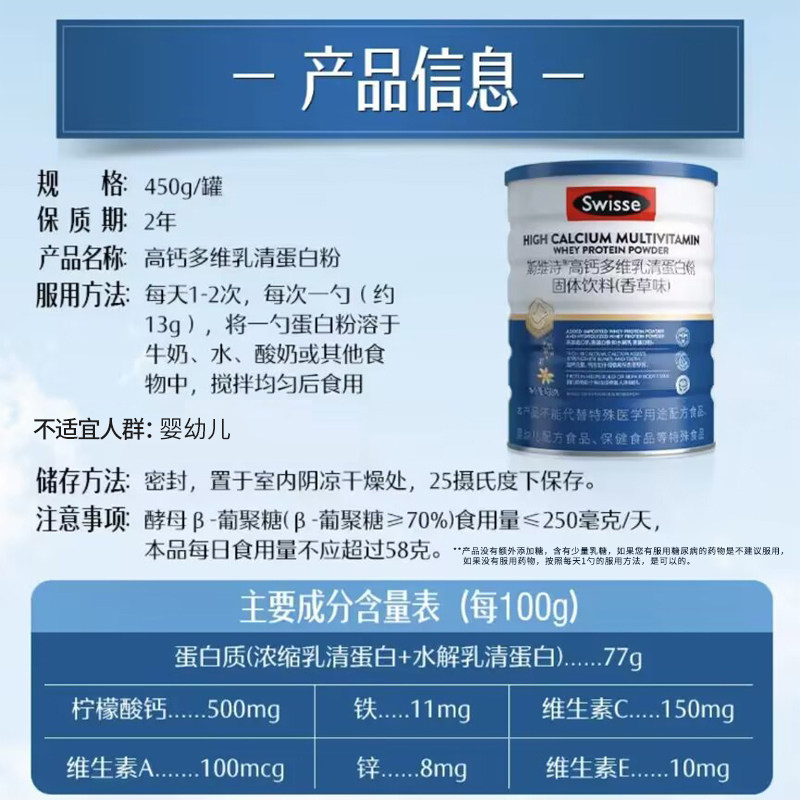 Swisse斯维诗乳清蛋白粉高钙多维蛋白质粉固体饮料官方旗舰店蛋白
