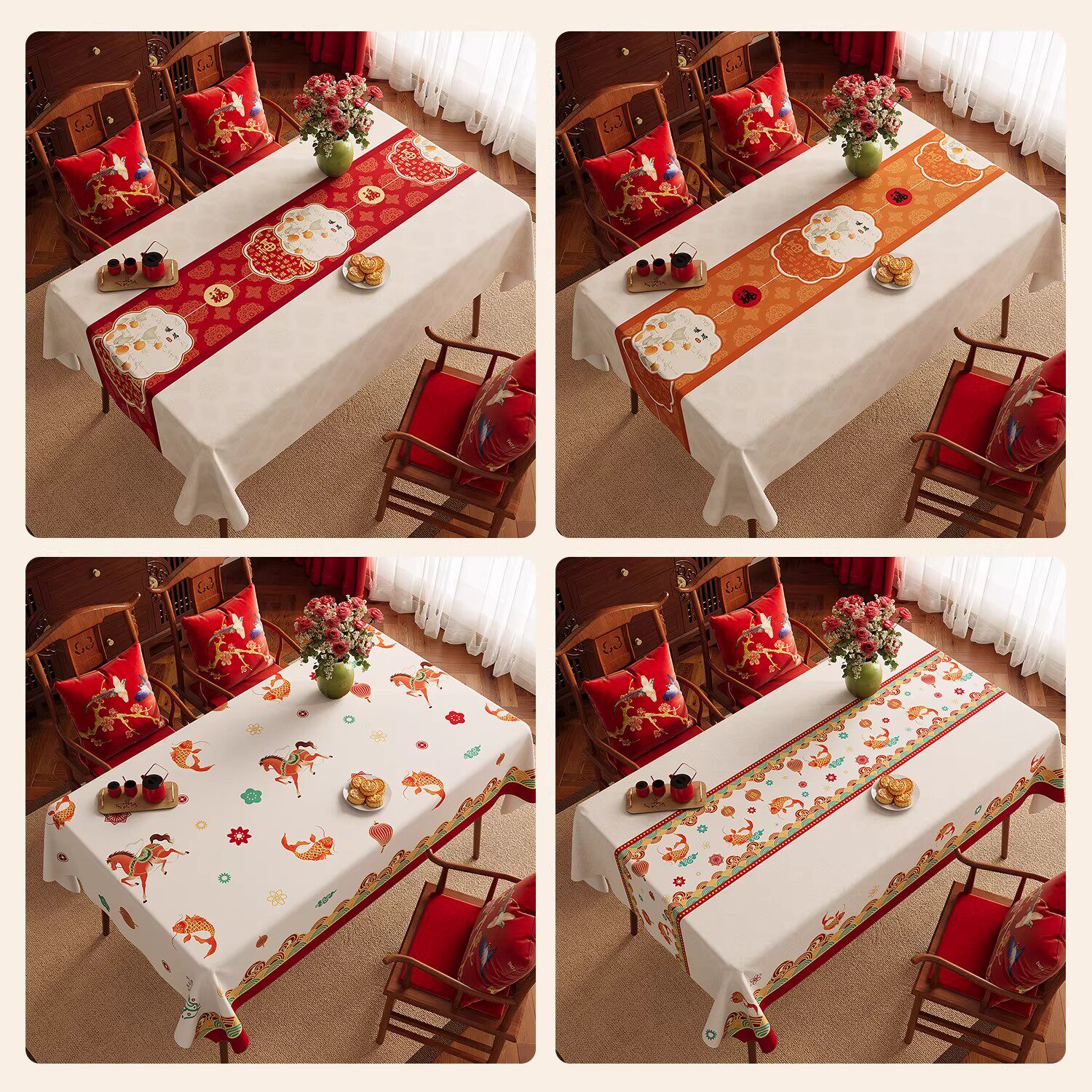 2026马年新年桌布免洗防水防油红色氛围感餐桌台布轻奢高级感过年