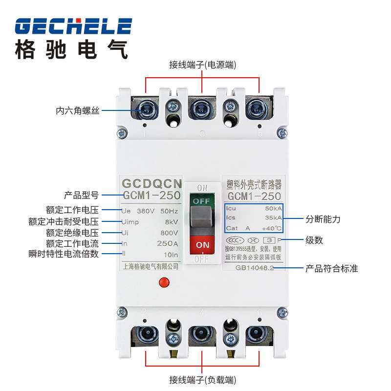 塑壳断路器3P 4P 63A 100A 225A 400A 630A 380V三相四线空气开关