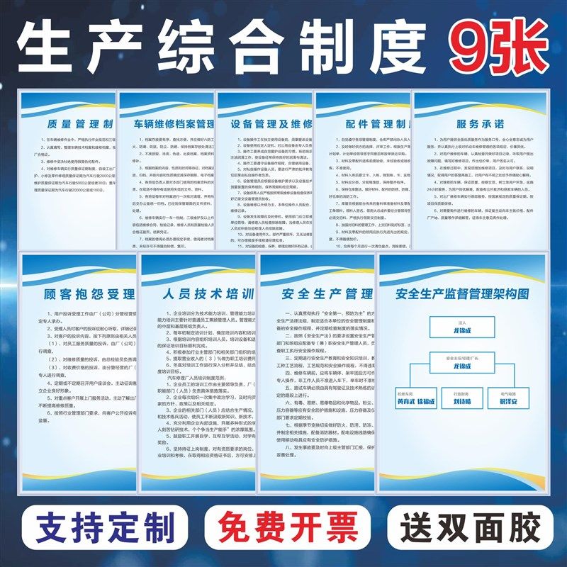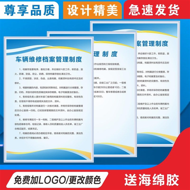 汽车维修管理制度牌一类二类三类修理厂4S店P运管检查全套上墙制