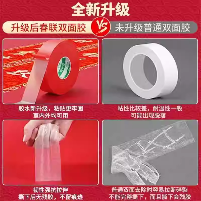 【春联专用】婚庆无痕双面胶贴透明高粘度对联胶带婚车易撕贴纸