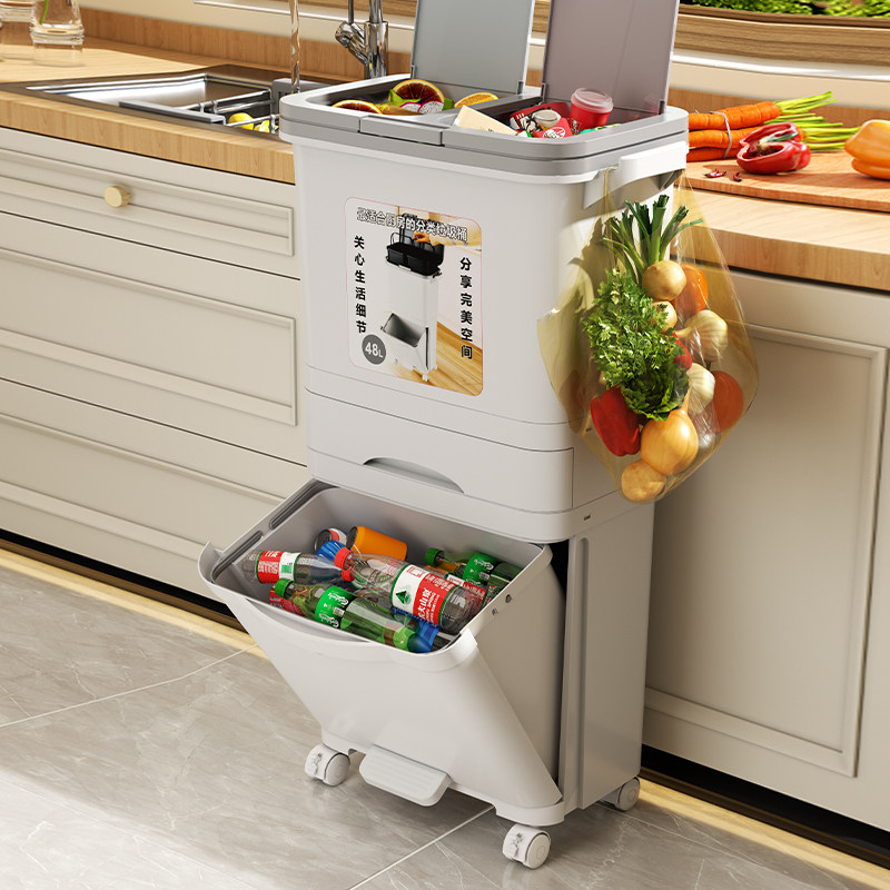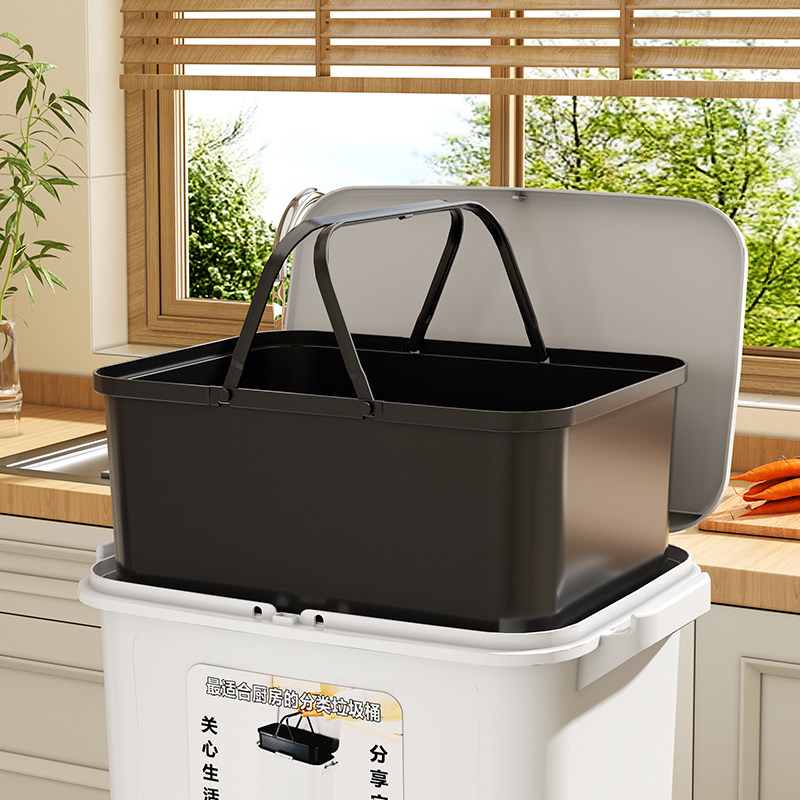 厨房垃圾桶家用2025新款带盖双层一体大容量厨余干湿分离分类日式