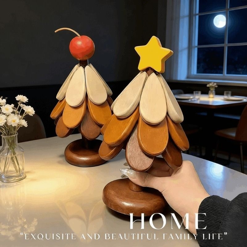 圣诞树隔热垫餐桌乔迁摆件实木锅垫折叠杯垫防烫餐垫好物砂锅防水