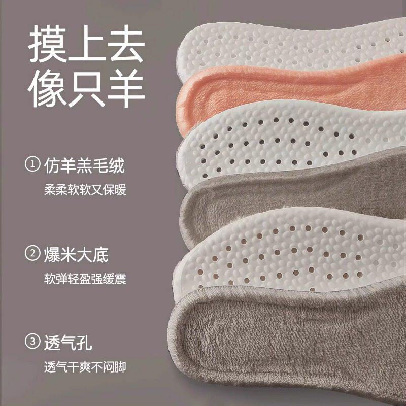 秋冬季毛绒运动保暖鞋垫超柔软踩屎感透气舒适羊羔绒加绒加厚鞋垫