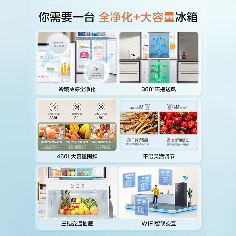 政府换新补贴海尔统帅469L十字对开四门一级风冷大容量家用电冰箱