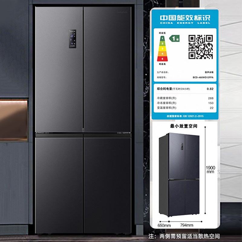 容声460/466升十字对开门超薄嵌入一级变频风冷大容量家用电冰箱