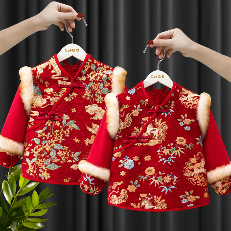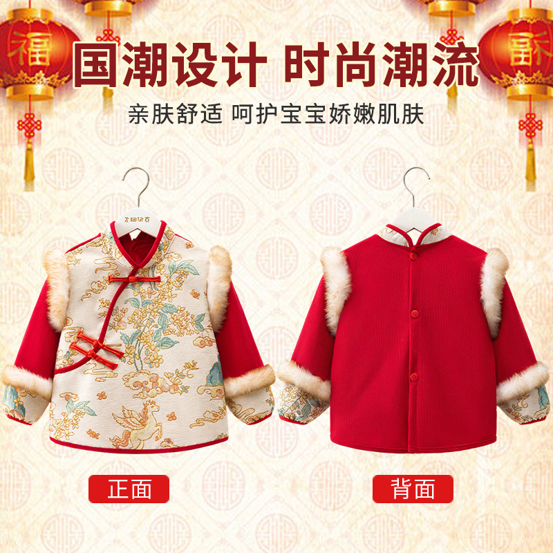 中国风拜年服罩衣儿童秋冬洋气过年外穿唐装男女宝宝吃饭围兜新款