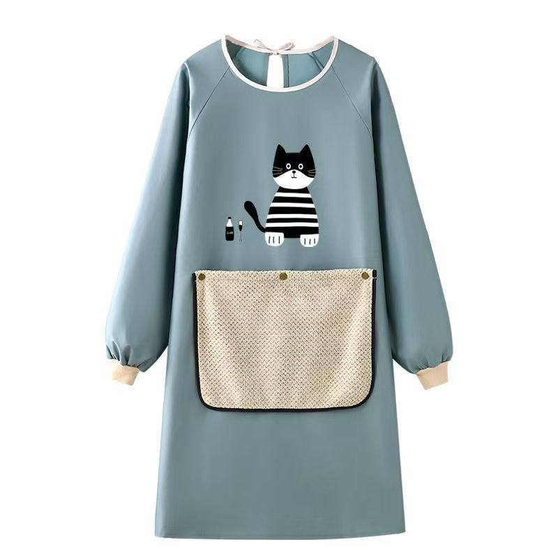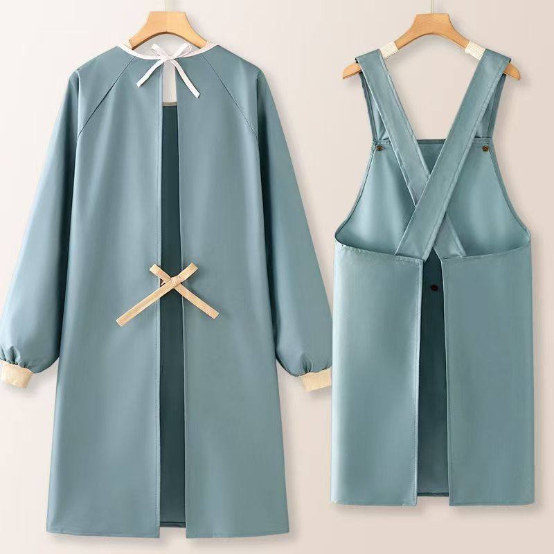可擦手罩衣女款防水防油污围裙家用厨房高级年轻围腰家务耐磨有袖