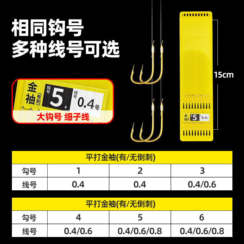 鱼钩绑好短子线双钩成品套装钓鱼袖钩金海夕金袖渔具野钓鲫鱼钩