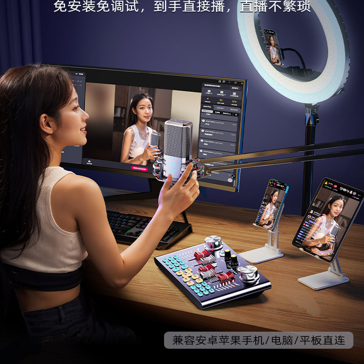 金运V18直播设备全套声卡唱歌专用手机抖音主播录音麦克风话筒K歌