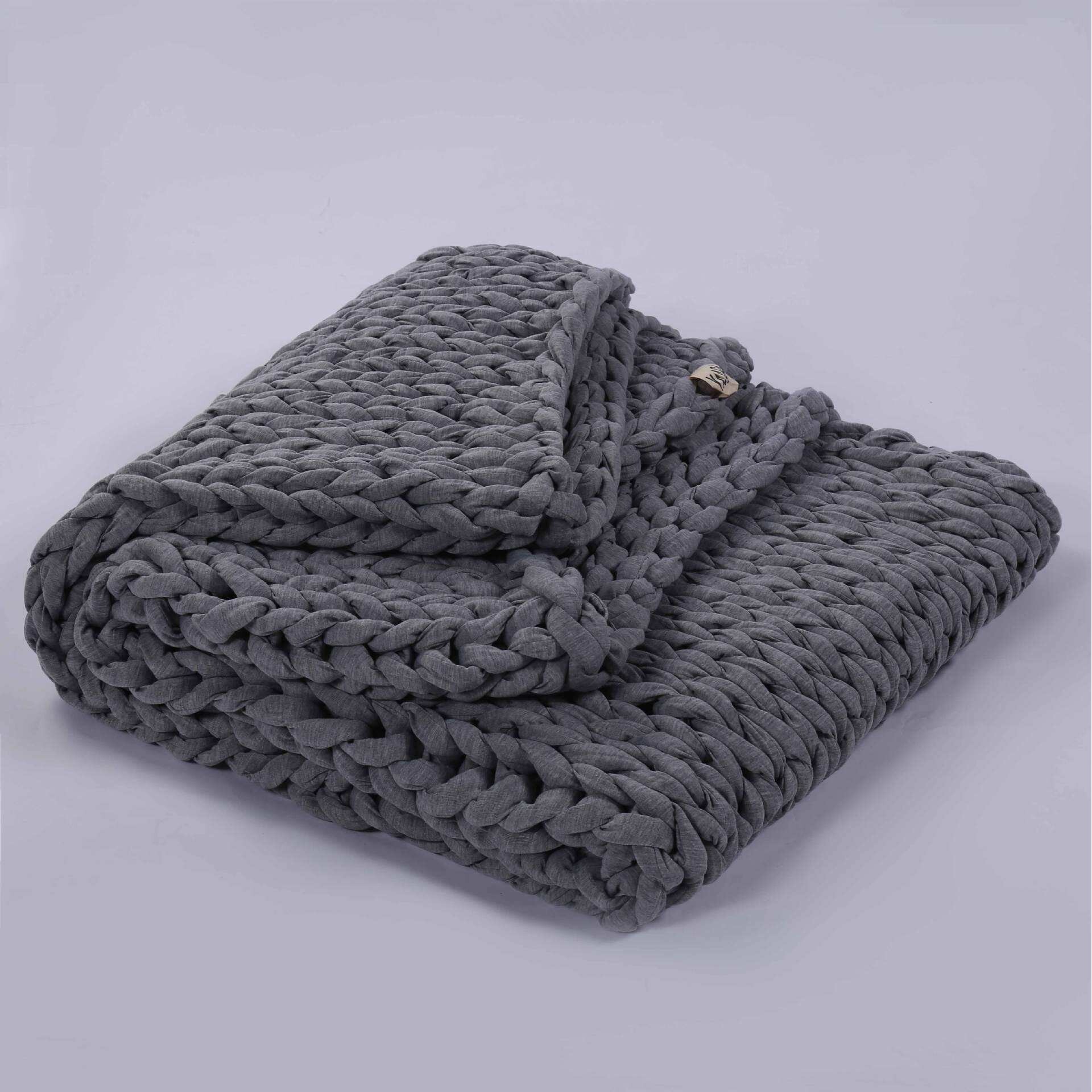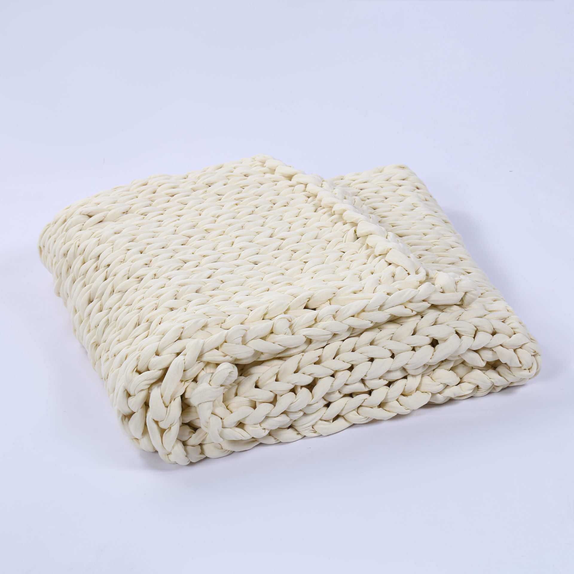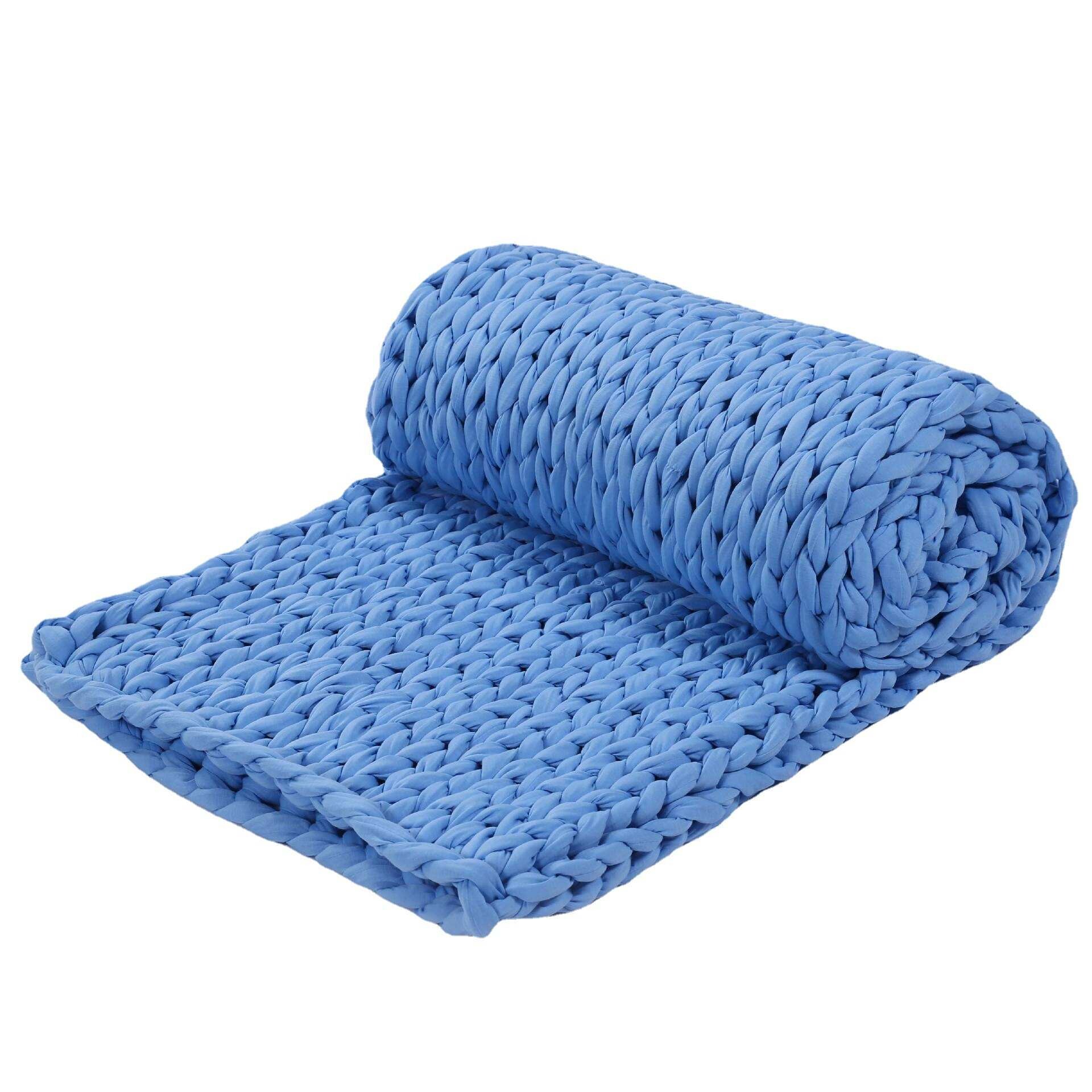 跨境新款粗线编织毛毯灌芯纱布条毯子手工编织毛线毯布条重力毯子