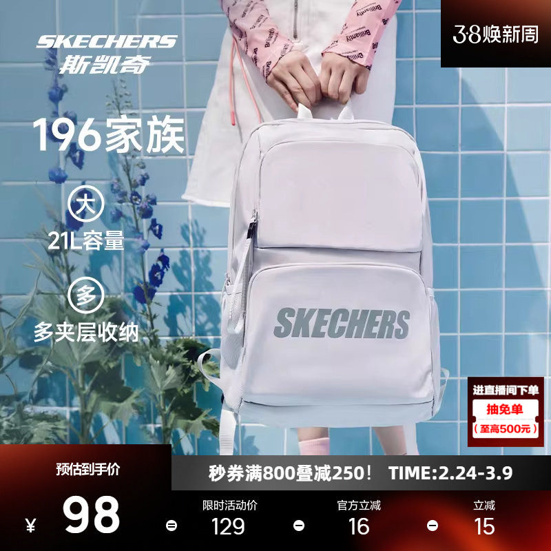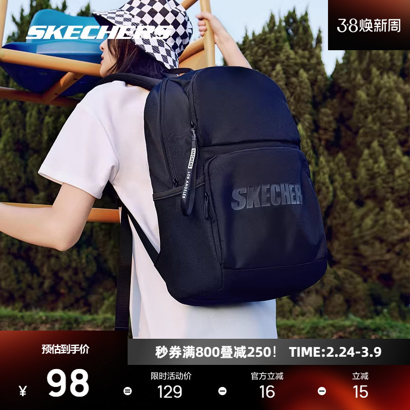 斯凯奇双肩包大容量简约旅行背包开学季百搭大学生运动休闲书包