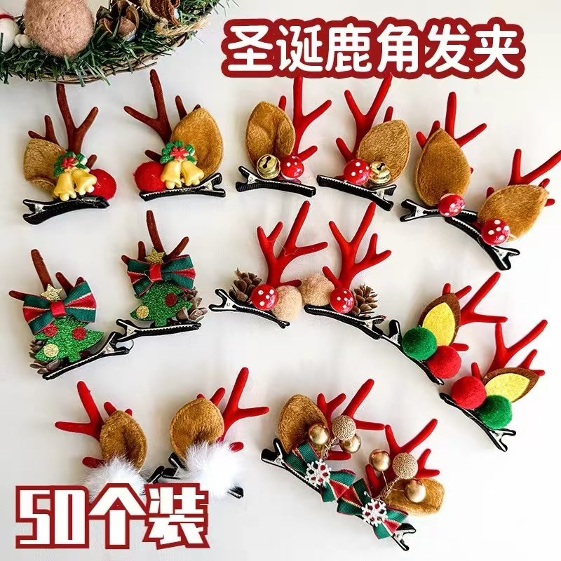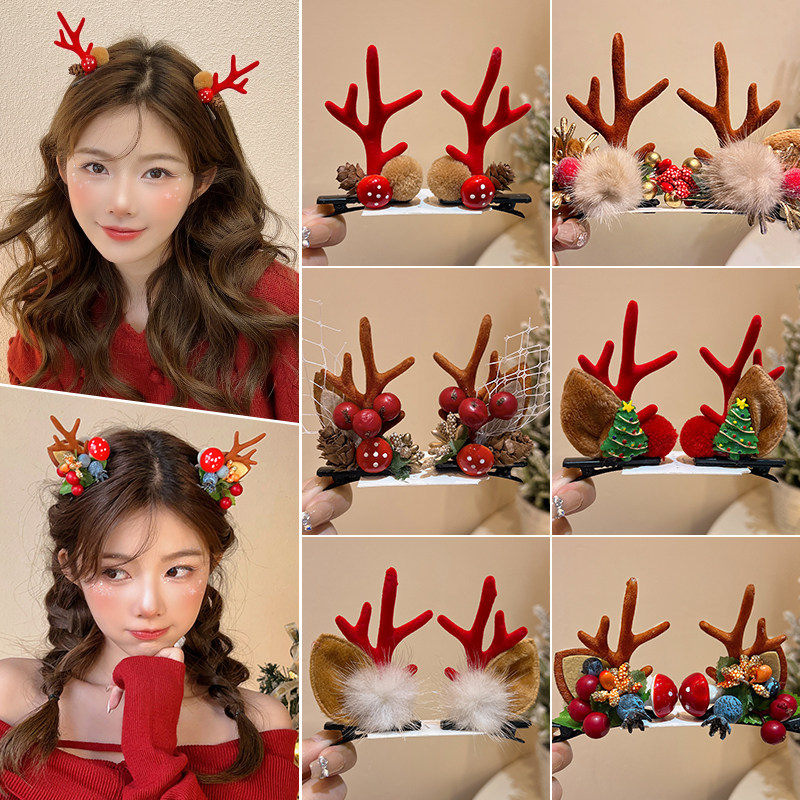 2025新款鹿角耳朵发卡发箍饰品小夹子发饰圣诞节头饰森系麋鹿发夹