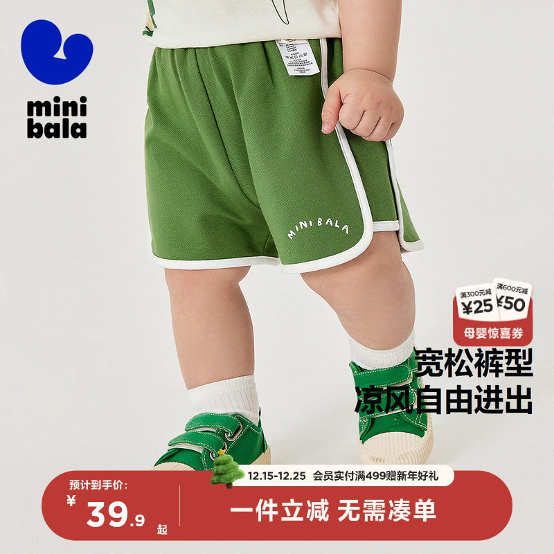 迷你巴拉巴拉夏季男童女童吸湿速干弹力透气宽松短裤2025新款