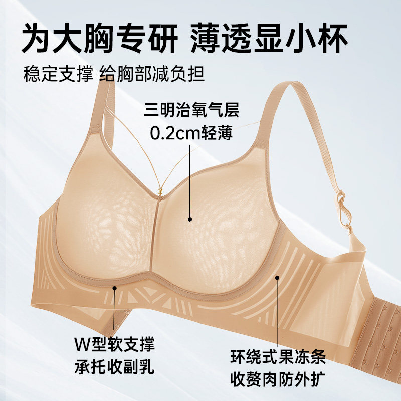 润微一拉薄大胸显小内衣女薄款无痕前扣拉链提拉防下垂收副乳文胸